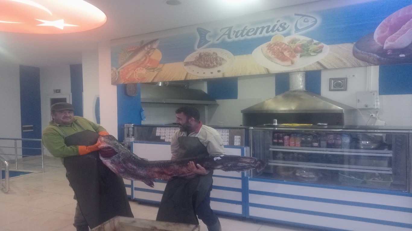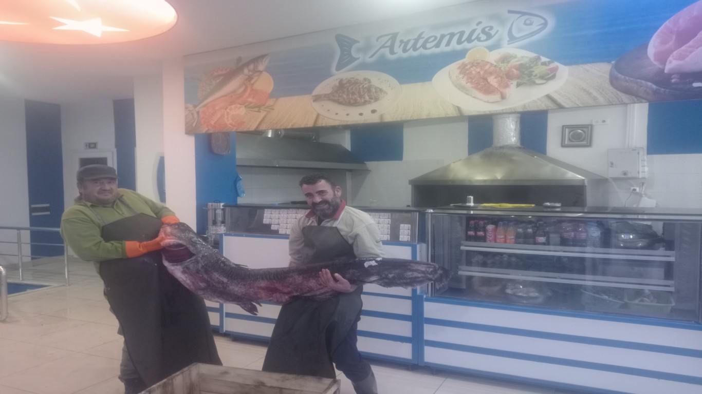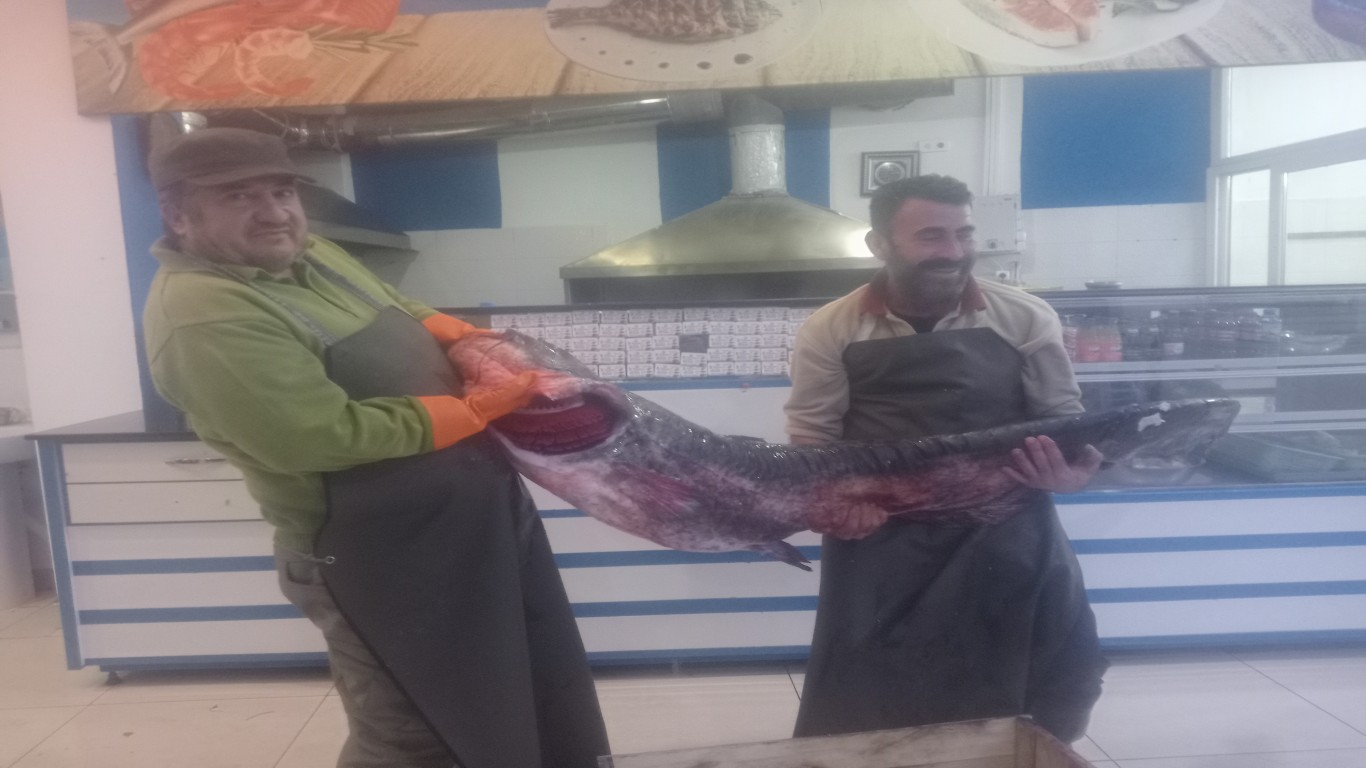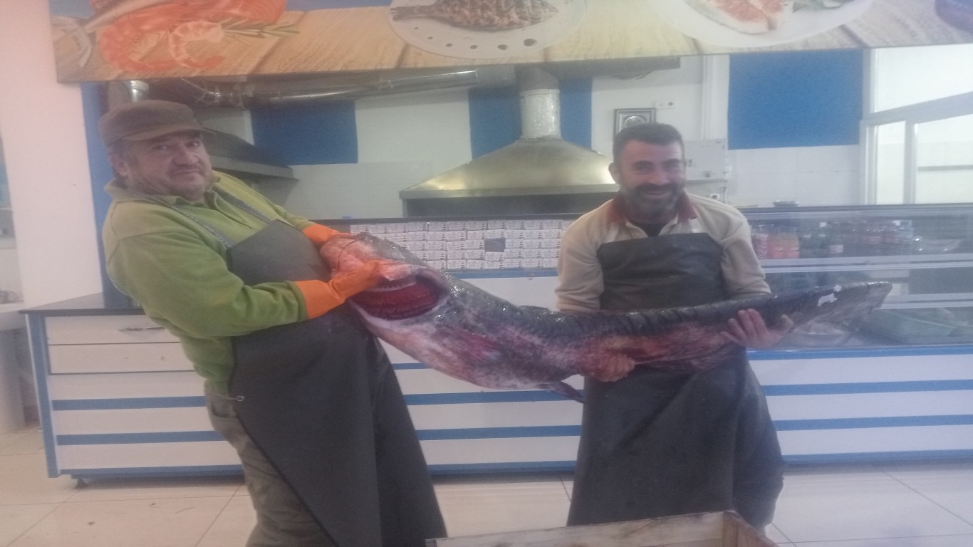 Çine Artemis Deniz Balıkçılık İşletme Sahibi Arif Gürsoy, "Tatlı su dünyasının kralı geldi. 41 kiloluk yayın balığımızın lezzetini tatmak isteyen müşterilerimize duyurulur. Bu lezzet kaçmaz" dedi.