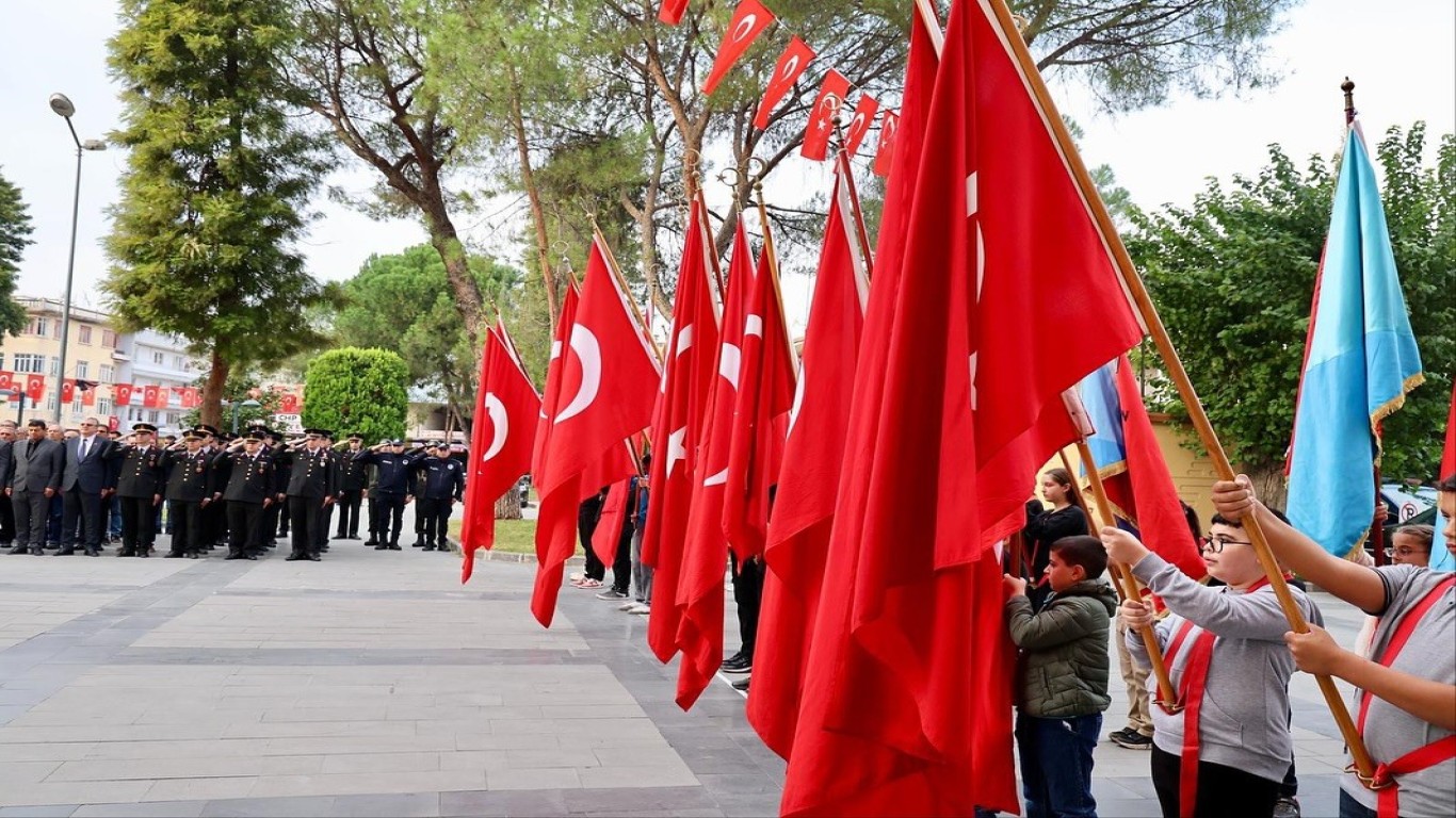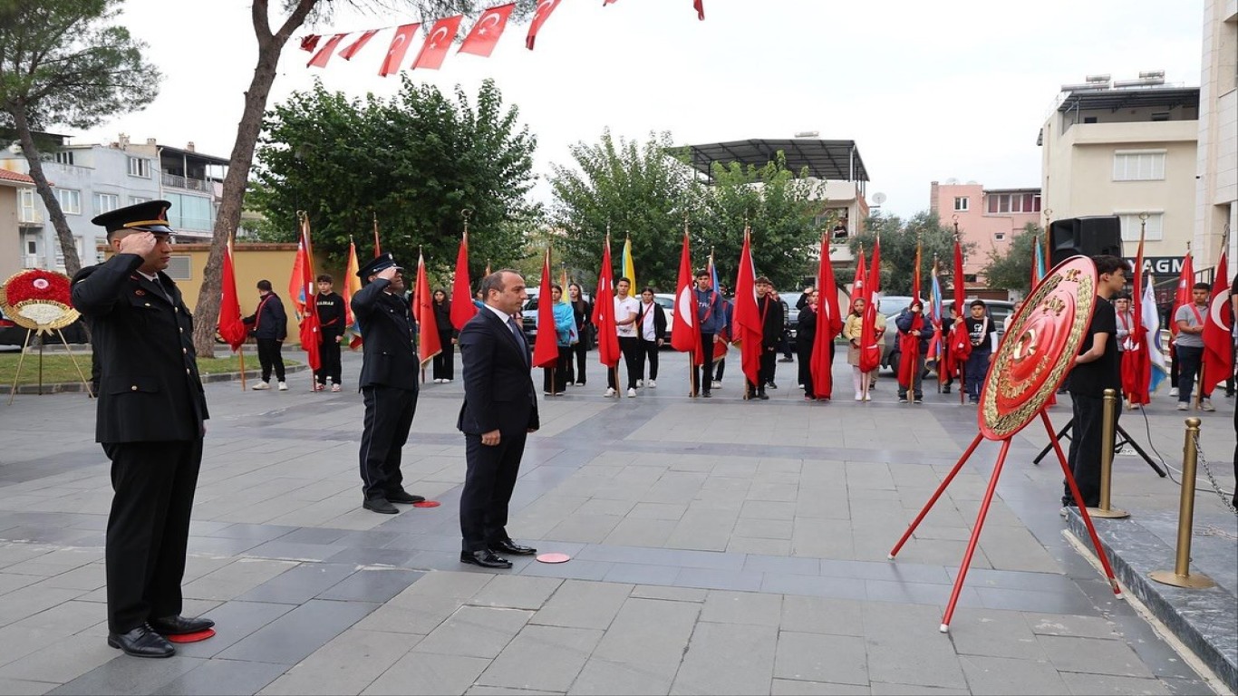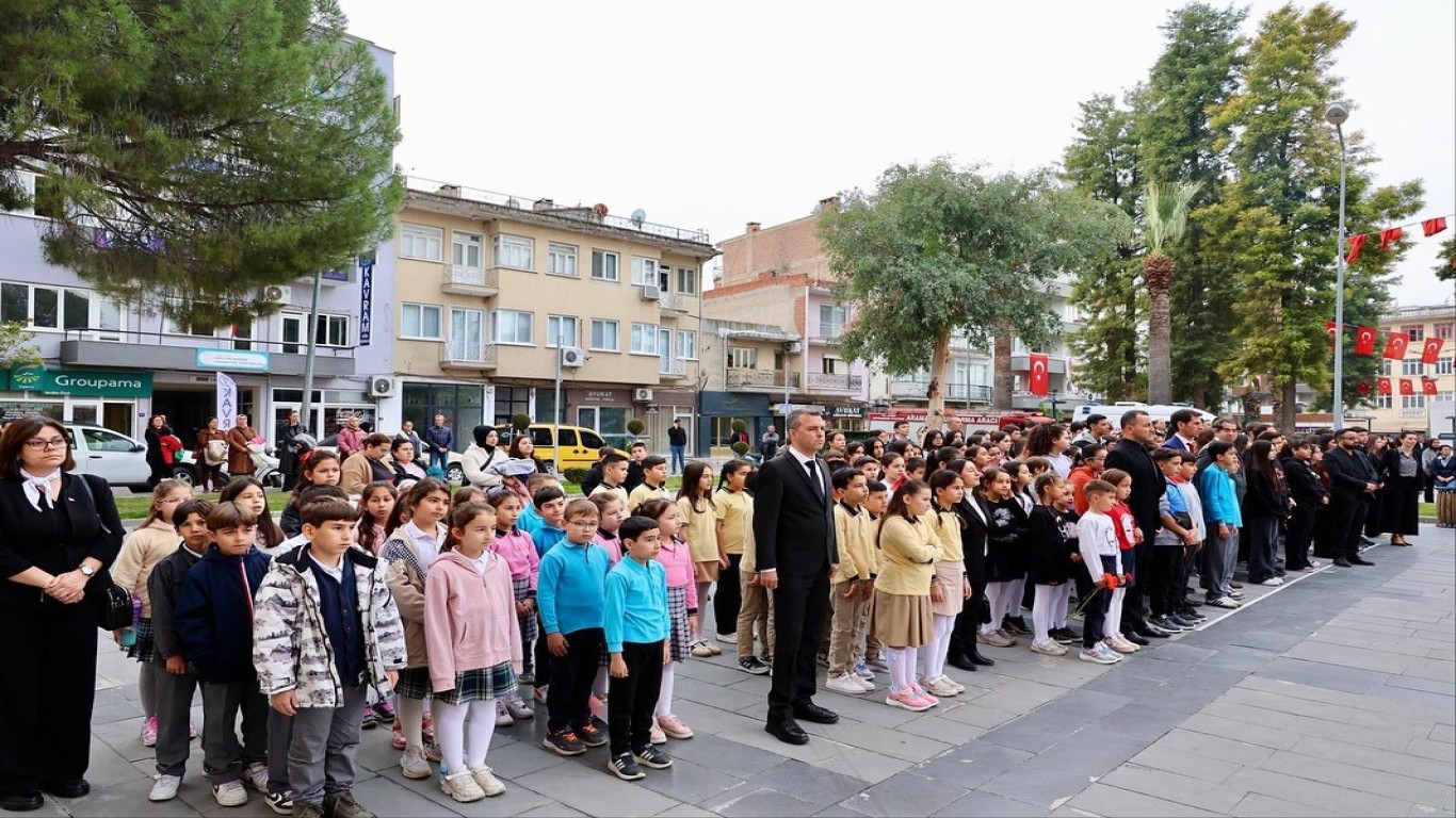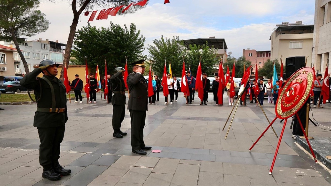 Çine Hükümet Meydanı’nda Atatürk Büstü’ne çelenk sunma töreni ile başlayan programda çelenk sunumunun ardından saat 09.05’te iki dakikalık saygı duruşunun ardından İstiklal Marşı okundu.