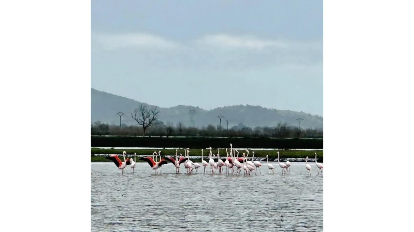 Aydın’ın Koçarlı ilçesinde sağanak yağışlar sonrası Büyük Menderes Nehri’nin taşmasıyla sular altında kalan tarım arazileri, göç yolundaki flamingolara ev sahipliği yaptı. Çiftçiyi üzen taşkınlar, flamingolar için ziyafet alanına dönüştü.