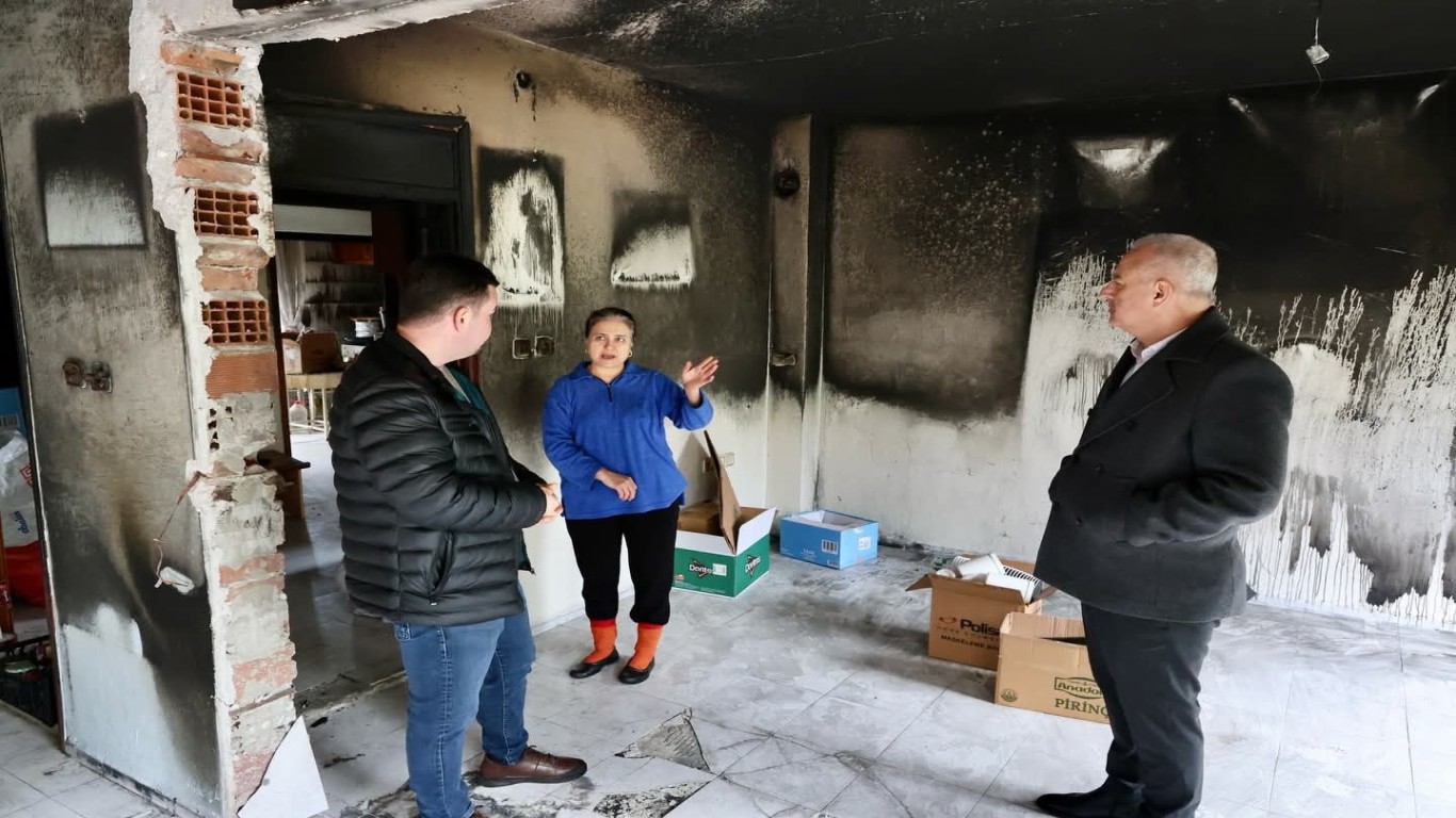 Belediye Meclis Üyesi Ulaş Urhan ile birlikte mağdur aileyi ziyaret eden Başkan Kıvrak, Selma Öz ve yakınlarıyla görüşerek geçmiş olsun dileklerini iletti. Yangının yarattığı hasarı yerinde inceleyen Kıvrak, ailenin mağduriyetinin giderilmesi için belediye imkanlarının seferber edileceğini vurguladı.