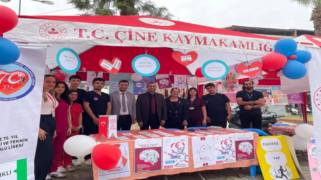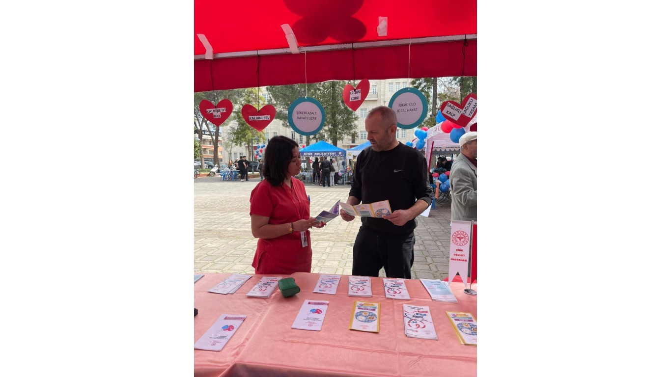 ÇİNE – Sağlık Haftası etkinlikleri kapsamında toplum bilincini artırmayı hedefleyen Çine Devlet Hastanesi, Çine Hükümet Meydanı’nda kurduğu bilgilendirme standıyla vatandaşlarla buluştu. Gün boyu süren etkinlikte, sağlık personelleri halka hayati konularda rehberlik etti.