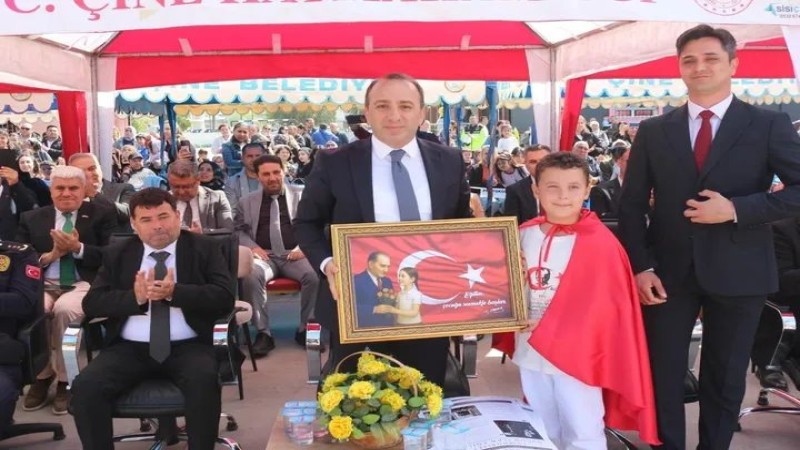 AYDIN – ÇİNE | Çine ilçesinde, 23 Nisan Ulusal Egemenlik ve Çocuk Bayramı büyük bir coşku ve heyecanla kutlandı. Türkiye Büyük Millet Meclisi’nin açılışının 106. yıl dönümü ve çocuklara armağan edilen bu anlamlı gün, ilçe protokolü ve vatandaşların yoğun katılımıyla bir şölene dönüştü.