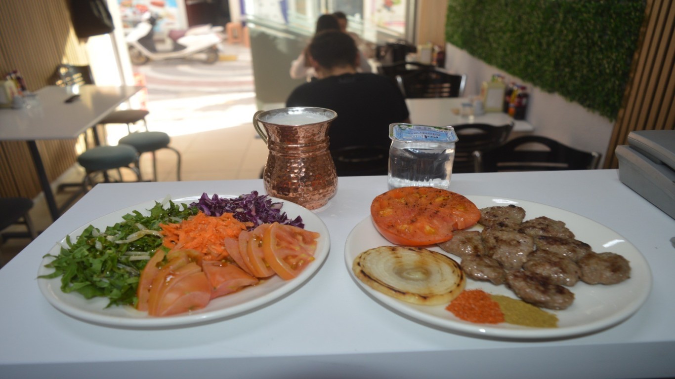 1 porsiyon (10) köfte salata ayran bardak su 200 TL