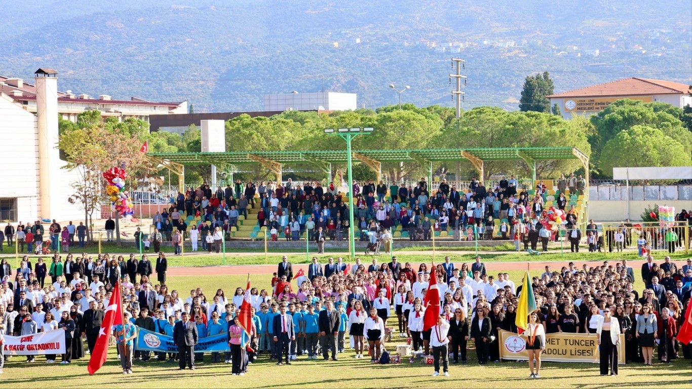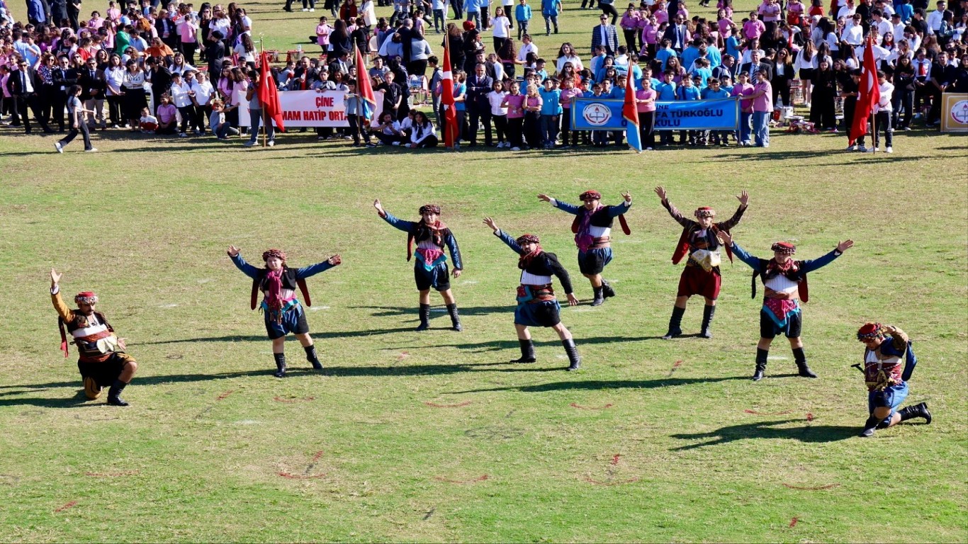 Çine'deki dün Hükümet Meydanında çelenk sunma töreni ile başlayan Cumhuriyet Bayramı kutlamaları Çine Yüksel Yalova Stadı'nda son buldu. Halk oyunları büyük beğeni toplarken öğrencilerin Cumhuriyet şiirleri alkış topladı.