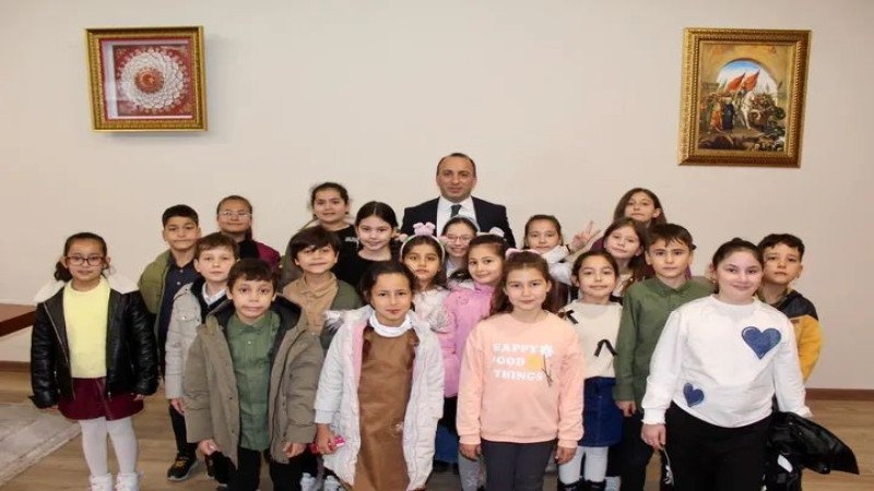 Cumhuriyet İlkokulu 2/A sınıfı öğrencileri, Okul Müdürü Cafer Kara ve öğretmenleri Fikriye Özkaya rehberliğinde,
