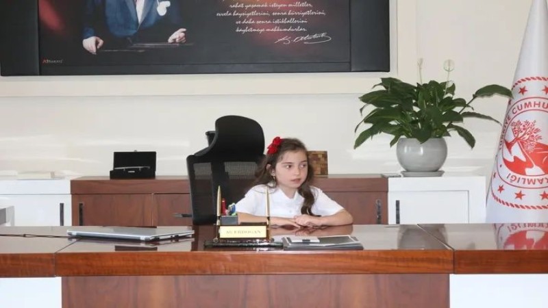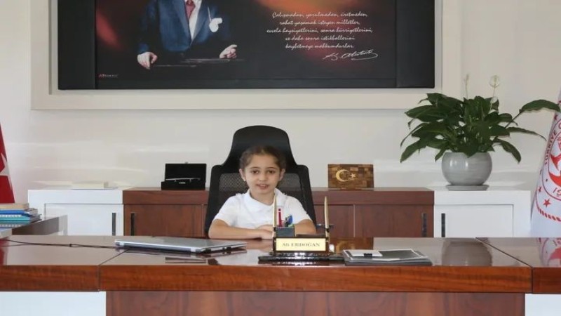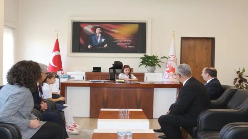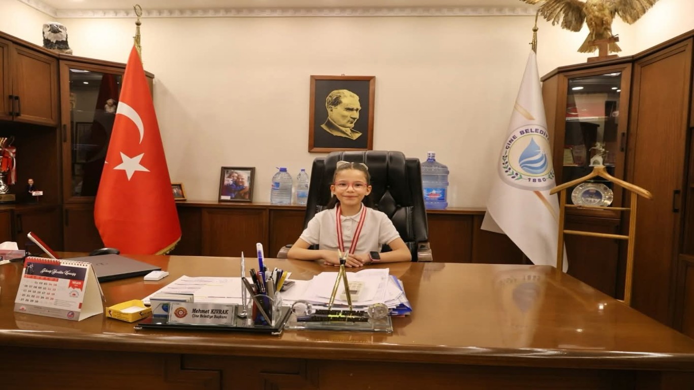 Çine Belediye Başkanı Mehmet Kıvrak da 23 Nisan coşkusuna ortak olarak makamını Atatürk İlkokulu 4/D sınıfı öğrencisi Buğlemsu Salur’a emanet etti.