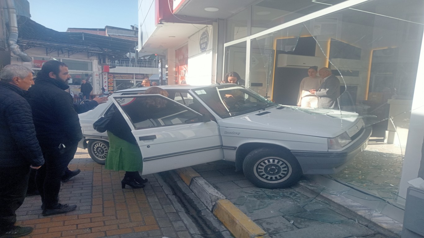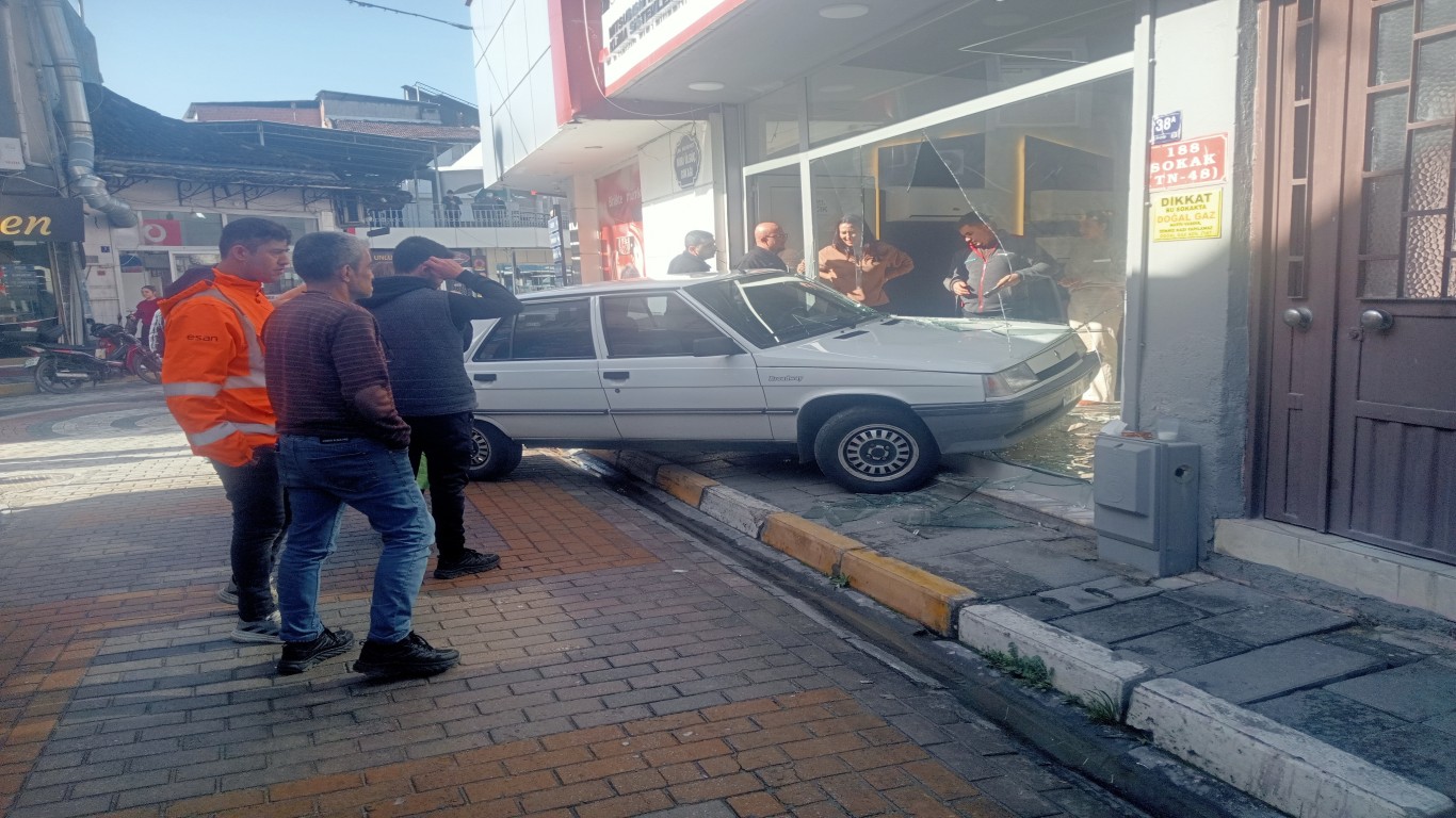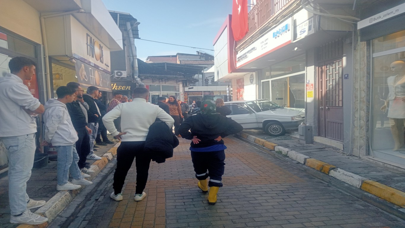 Çine'de seyir halinde olan bir otomobil, sürücüsünün direksiyon hakimiyetini kaybetmesi sonucu kontrolden çıktı. Araç, bir esnaf dükkanına girdi.