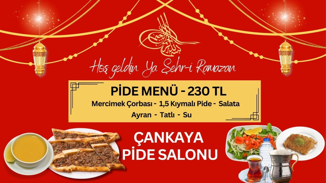 "Hoş geldin Ya Şehr-i Ramazan" sloganıyla kapılarını açan Çankaya Pide Salonu, iki farklı ana seçenekle Ramazan’ın manevi atmosferini lezzetle taçlandırıyor.