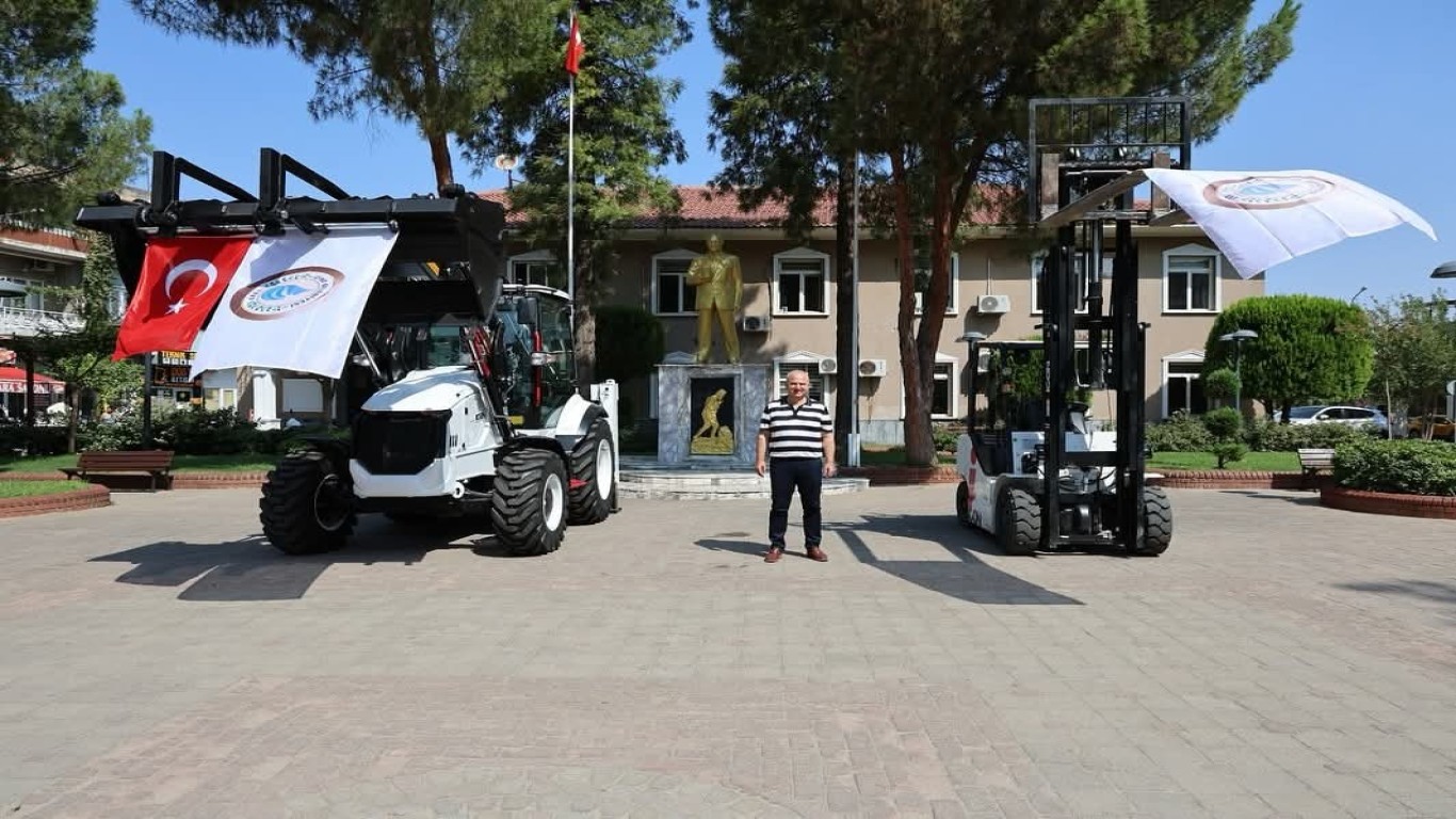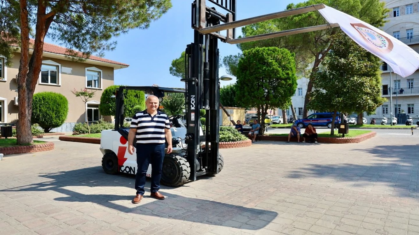 Çine Belediye Başkanı Mehmet Kıvrak, belediye bütçesinden karşılanan forklift ve kepçeyi ilçeye kazandırarak hizmete sundu.