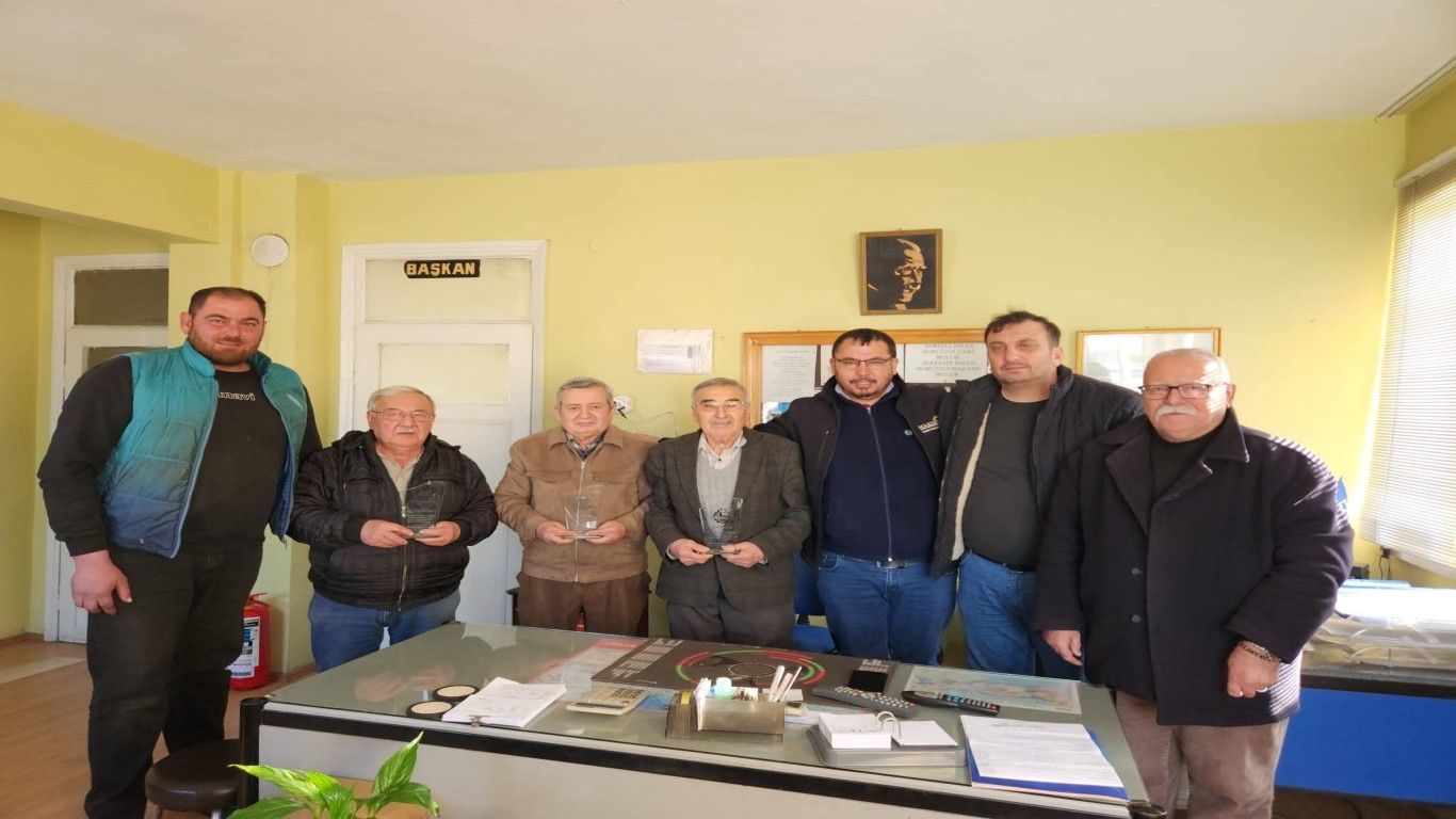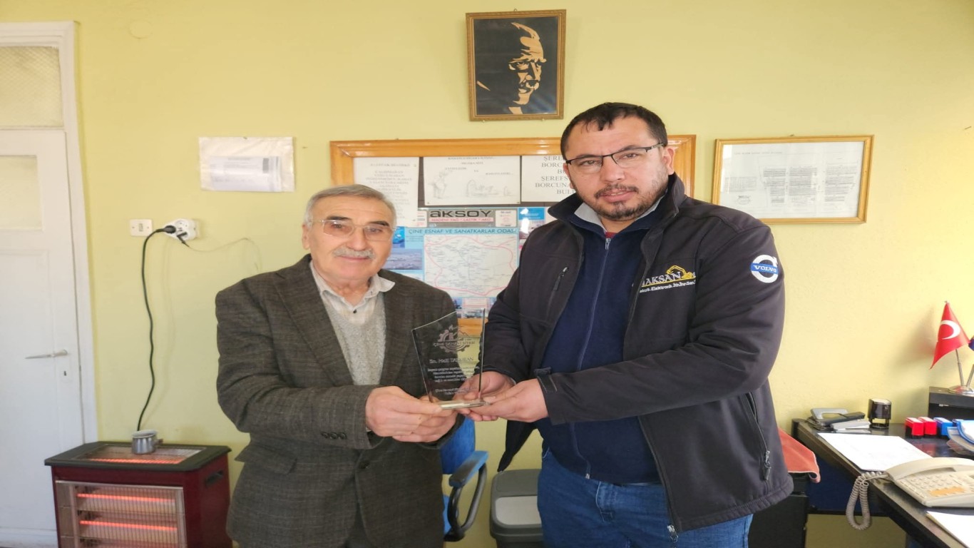 Sanayi Sitesi Başkanı Tufan Yortuç ve Yönetim Kurulu Üyeleri Hasan Çiçek ile Abdurrahman Ataş, meslek hayatlarını onurla tamamlayan ustalara onur plaketlerini bizzat takdim etti.